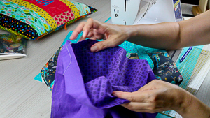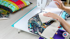 12. Por último, debemos colocar el forro en el interior del bolso y en la máquina lo cosemos.