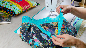 Además de realizar el bolso, haremos las asas con telas de una manera que te va a encantar.