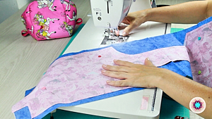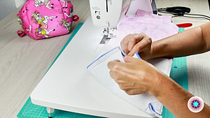 3. Luego las unimos con alfileres a la tela interior y boata para acabar cosiendo con la máquina de coser y cortar.